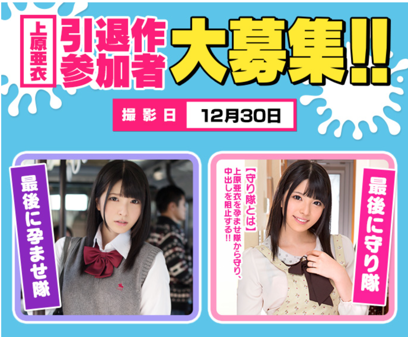 我想無碼片商應該也會針對上原亜衣的引退有所動作,不過現在還沒有消息。重點還是在她拋出這個驚人的消息後從此就是看一片少一片,直到她生涯第三次的百人中出後就沒得看了…..