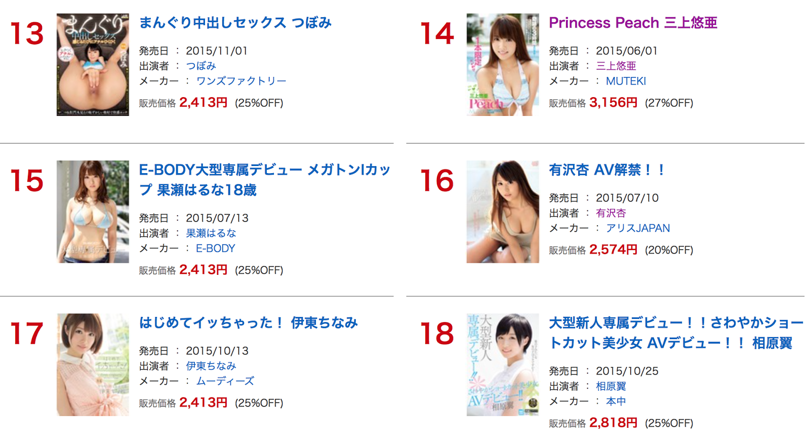 所以我習慣先看單一作品的銷售排行,因為那可以看出哪位女優的爆發力最強: