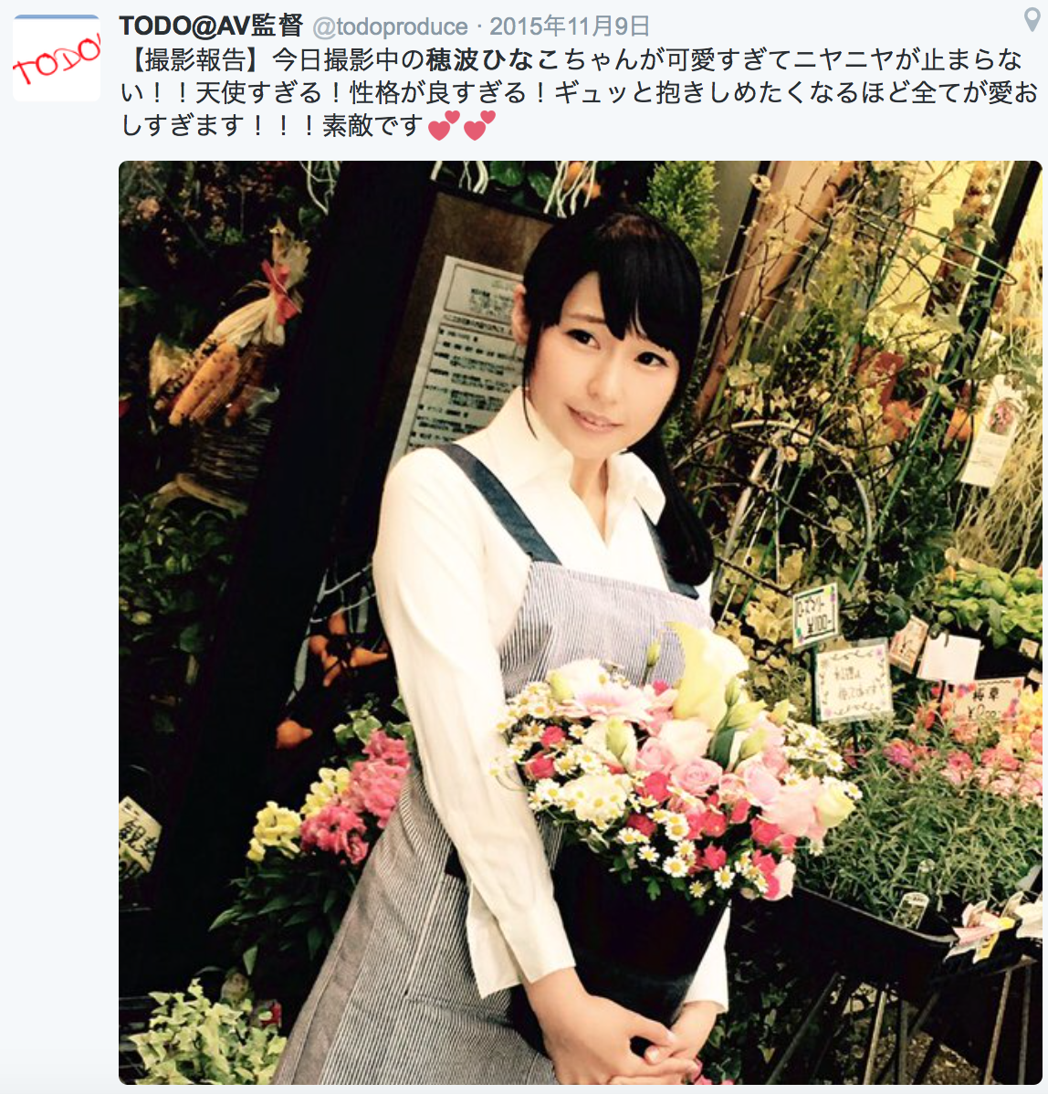 所以她是一個很會跑步的花店店員囉?好吧,我知道這樣很難笑,不過因為2支作品都是由Prestige發的只能用這樣硬拗的方式解釋。但重點是穂波ひなこ(穗波雛子)的條件之好連業界的老手也為之驚豔,著名的AV監督TODO就在自己的twitter上大誇這位可愛的女優「宛如天使」!
