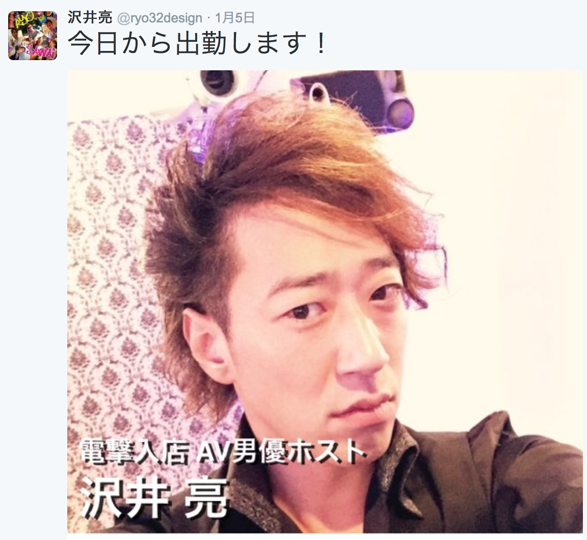 後來爆發用LINE約未成年少女打炮的醜聞讓他重重摔了一跤,不過現在看來並沒有影響沢井亮的事業,從twitter就可以看到他工作依然不少最近還去了牛郎店賺女人的錢。而且從Moodyz下個月(2016/2)的新作「18歳現役女子大生が処女喪失AVデビュー」來看沢井亮在AV片商心目中的地位還不低,這支作品與其說是在賣鈴木理沙的第一次不如說全看沢井亮的個人魅力: