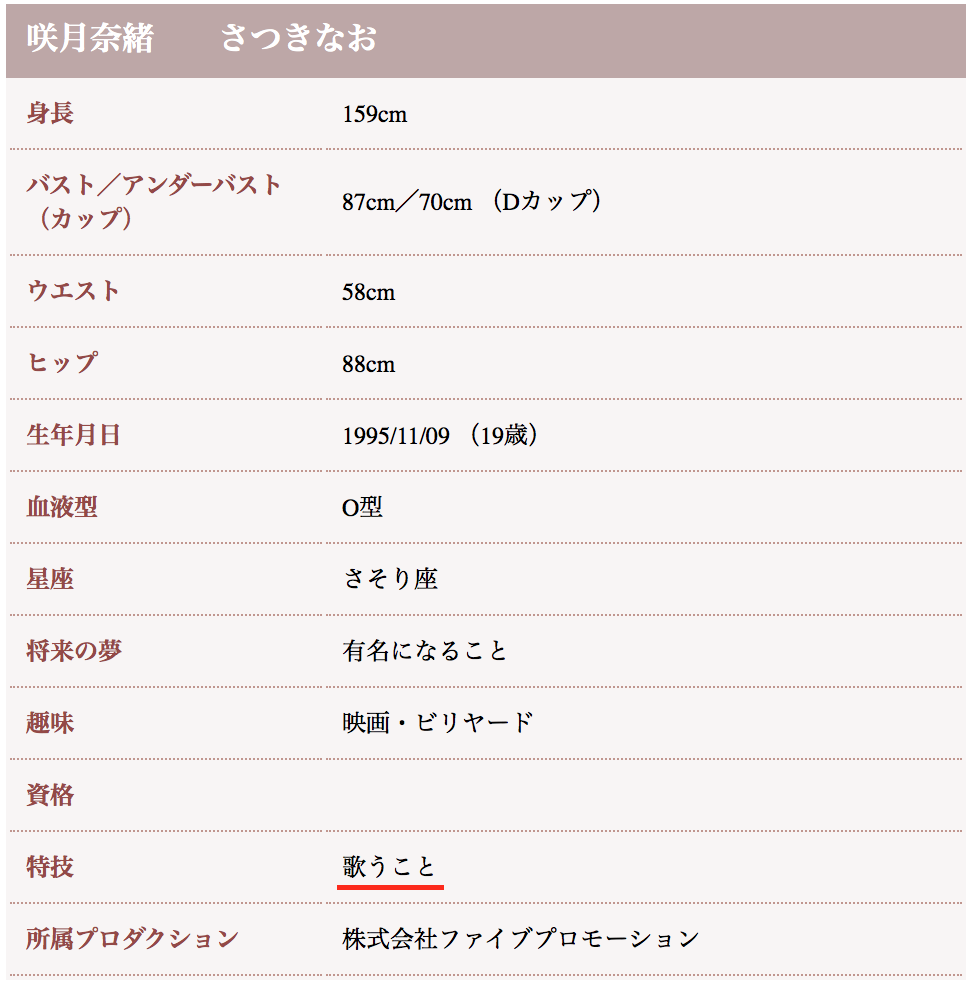 這樣當然比在Candy出道好,因為在kawaii*衰弱不振的情況下現在本中這家中出片商已經成了每個月25日發片檔的扛霸子,能去那兒出道自然比較容易吸引影迷關注。而且從資料上來看咲月奈緒的興趣是「歌唱」,所以雖然街頭歌手的設定有可能是偽造的但搞不好她還真的有歌唱底子呢…