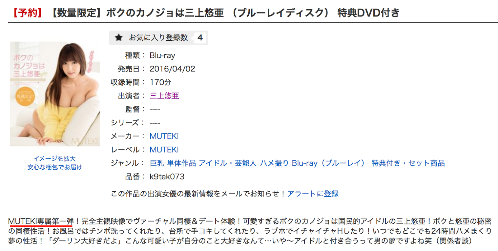 其實也沒離開多久,打從2016年回歸Muteki並且解開封印打真炮後她也只有3月沒有作品。不過就和本站之前預期的一樣,在Muteki能夠承諾她「不是AV女優」以及可以穩定地拿到片酬的情況下三上悠亜一定會再有作品的,而4月1日這一支被掛上專屬第一彈的作品「ボクのカノジョは三上悠亜」(我馬子是三上悠亞)相信又會是轟動武林驚動萬教血洗排行榜的大作…
