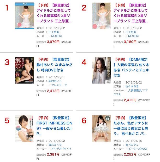 沒辦法,偶像團體的光環實在太驚人,再加上緋聞帶來的知名度以及本身超上鏡頭的臉蛋、豐滿的上圍以及直接讓男優插進來的勇氣讓三上悠亜雖然還是拒絕AV女優的頭銜卻已屠殺AV界的銷售排行榜;雖然我對於DMM到現在還是沒把她列入AV女優排行榜一事嗤之以鼻、雖然現在網路上也開始有批評她太會演反而不夠自然的聲音,但我們都不能否認,2016的上半年甚至是一整年她就是AV界的南巴萬(Number One)了…