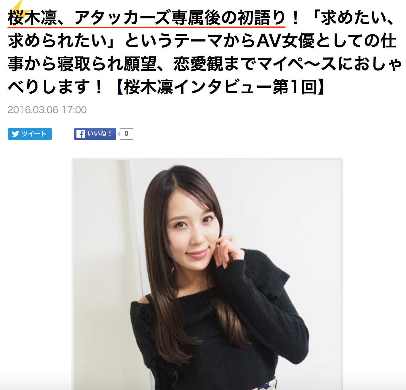 證據就是在DMM的訪談文、標題直接就標明了桜木凛是アタッカーズ(Attackers)專屬陣容的一員。所以她在5月的新作「潜入捜査官、桐生鈴音 淫洛の復讐鬼」不是來支援的,而是為自己所屬的片商效力: