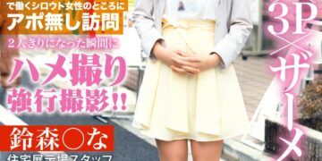 這樣的優質新人當然不能讓她跑掉,於是監督近一步交涉希望她能讓男優「放進去」,不過她因為太害羞所以拒絕了,但不放棄的片商工作人員是一路跟著她回到工作的樣品屋,趁著其他工作人員不注意的時候就把她硬上了:
