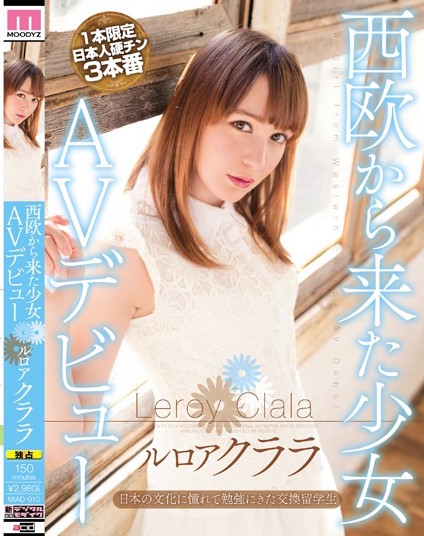 於是AV界的指標片商Moodyz就在5月13日檔找來了洋將「ルロア・クララ(Leroy Clala)」並且告訴大家她是個「西欧からきた少女(來自西歐的少女」,要用她完全不同於日本女優的五官輪廓誘惑影迷的小弟弟…