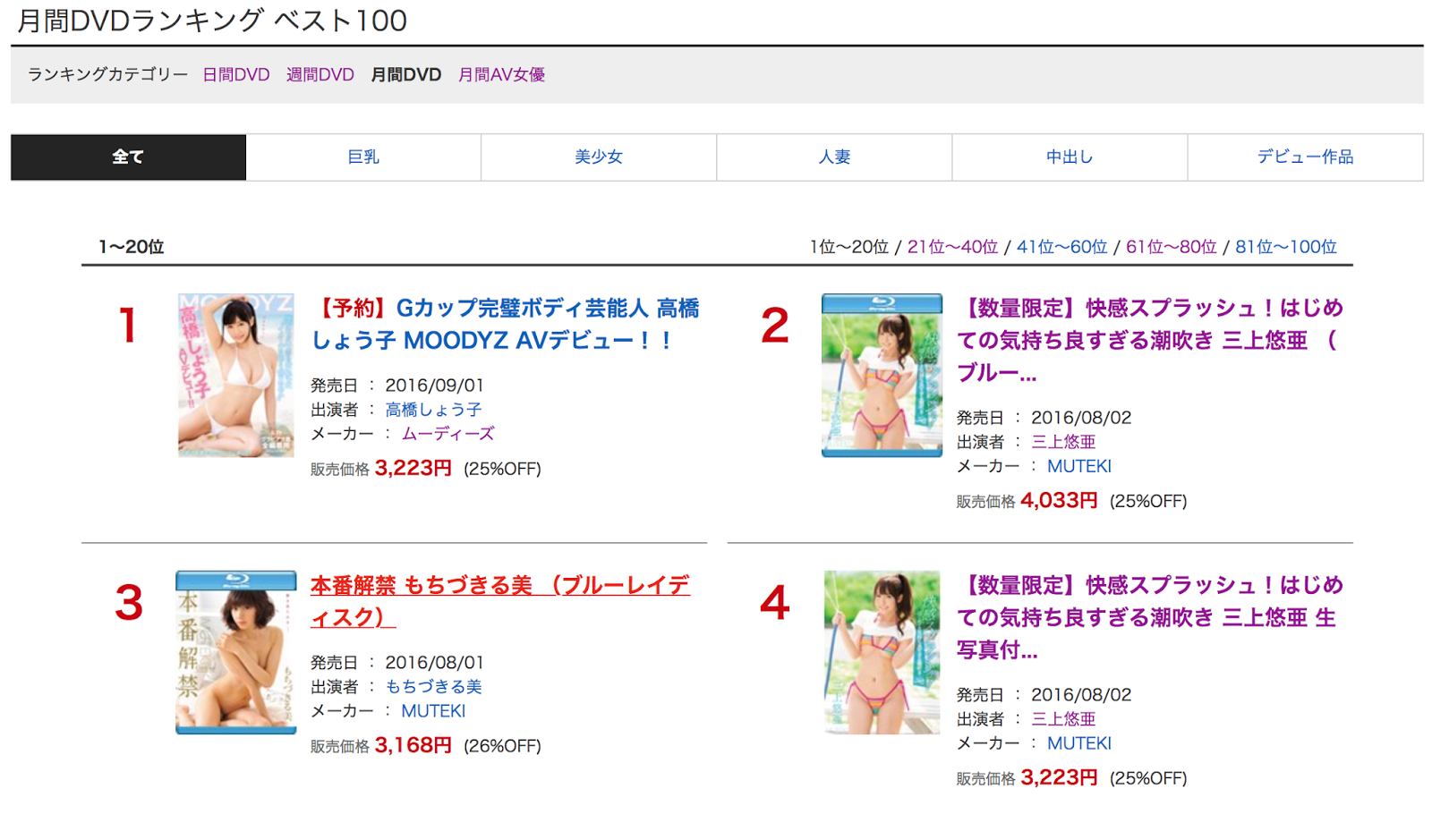 高橋しょう子(高橋聖子)有多強?成為Moodyz專屬後她憑著一支作品就橫掃DMM的月間DVD及女優累積銷售排行榜,但大家可以看看緊跟在後的是誰呢?答案正式第一次演出大量潮吹片的三上悠亜,現在好了,三上悠亜正式降落凡塵成為S1的AV女優,這樣兩個來自同一陣營、現在又分屬兩家片商的女優要在戰場上廝殺實在太有趣了吧?