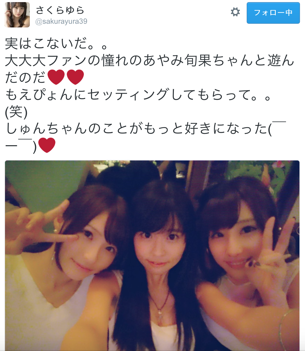 這顯示出不管是什麼問題或糾紛應該都解決了,或許不是馬上就全面回歸但我們可以期待さくらゆら(櫻由羅)可以一步一步地回到工作崗位上。也因為她今天宣布即將回歸,我想之前和あやみ旬果(彩美旬果)及天使もえ(天使萌)去唱卡拉OK露臉應該不是意外而是さくらゆら(櫻由羅)知道問題解決了所以才不避諱了: