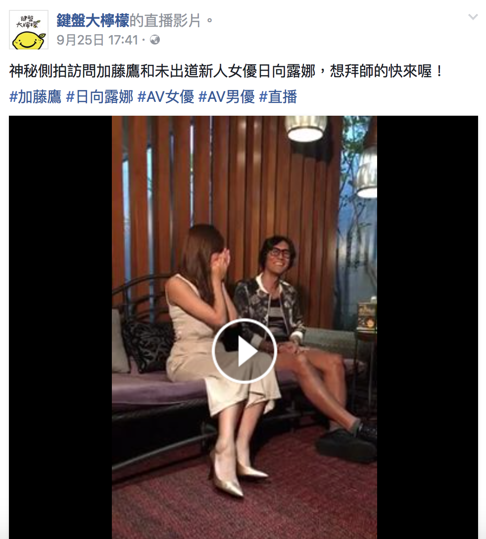 想看完整訪談的朋友可以上Facebook搜尋影片,加藤鷹大家都很熟悉了,倒是那位還沒出道的「日向露娜」又是何方神聖啊?