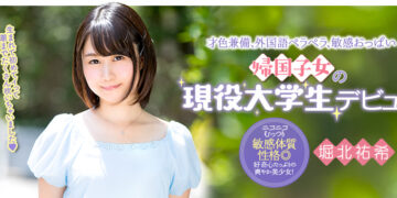 不過文案就有點意思了:首先,作品的標題已經寫了,堀北祐希是個「帰国子女」,也就是說之前她是住在國外、最近才回到日本成了AV女優的,而由她「外国語ペラペラ」(外文說得很流利)指的是中文來看她應該之前很可能就是待在中國大陸吧(由口音判斷):