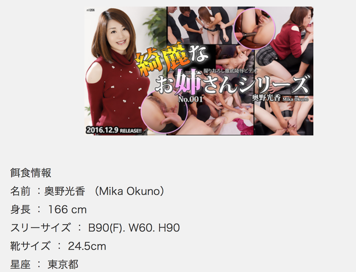 那,為這個新系列插頭香的女優「奥野光香」是誰呢?