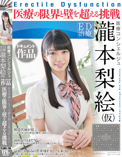 拿這個名字去查就可以發現她不但已經有2支作品而且在JAE(日本成人博覽會)的時候就在SOD的櫃台與大家見面。只是很抱歉,當時登場的女優很多、大家又把焦點放在奶子超大的桐谷まつり(桐谷茉莉)身上所以應該很少人注意到這位擁有玫瑰瞳鈴眼、眼睛大得超乎想像的新人身上。至於為什麼我會用「AV界的医龍」來形容這位新人呢?那是因為在之前的兩支作品中瀧本梨絵是和醫師研究一種全新的ED治療技術、為了造勢SOD集團還特別商請了知名監督溜池ゴロー前來相助: