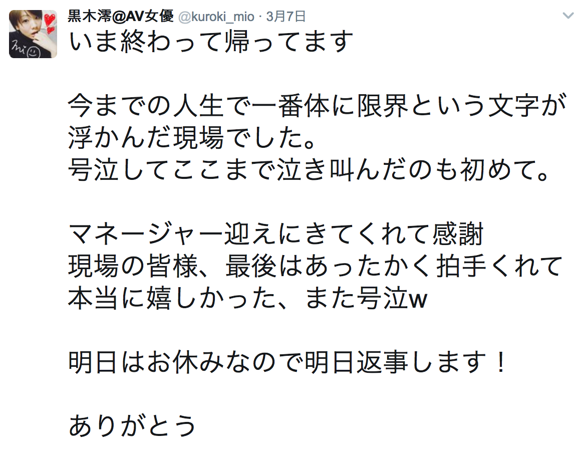 請安心,我們不會讓她用這種看起來很「不良」的造型上陣的,因為黒木澪自己也說了,會染成金髮是因為作品需要,下週她就會把髮色染回來了。只是我也很好奇究竟是什麼作品要她染成金髮?而且她還說演出那支作品讓她痛哭失聲,因為實在是超出她忍耐的限度!