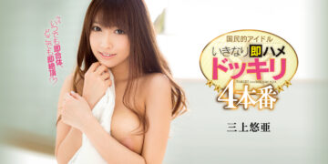 4月19日的作品「国民的アイドルいきなり即ハメドッキリ4本番 いつでも即合体、どこでも即絶頂」就是最好的例子:為什麼這支作品有話題性呢?標題中的「即合体」就是關鍵,沒錯,就和字面上的意義一樣,三上悠亜的新作是「突襲合體」、也就是在沒有心理準備也毫無防備的情況下遭到亂入的男優插入: