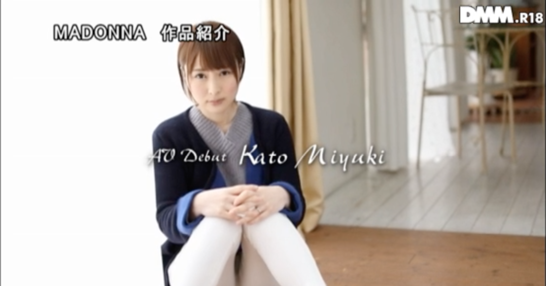 哈,會這麼說是因為在另一家片商Madonna她有著非常誇張的設定,那是她的出道作「NTR願望の夫の為にフランスから緊急帰国!! 国際結婚4年目の透明感溢れるショートカット人妻 加藤みゆ紀 31歳 AV Debut!!」:片中她是遠嫁到法國的人妻,因為外國老公很變態,想看自己的老婆給人家幹所以她緊急返回日本加入AV界體會東洋巨炮的威力。雖然出發點是為了滿足老公的變態需求,但當小穴被男優抽插的時候她還是理性崩潰了: