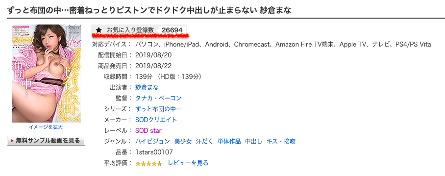 所以我們從數據來看,在業界最大的販售網站FANZA(DMM)上,SOD哪一支作品得到了影迷最多的按讚數?