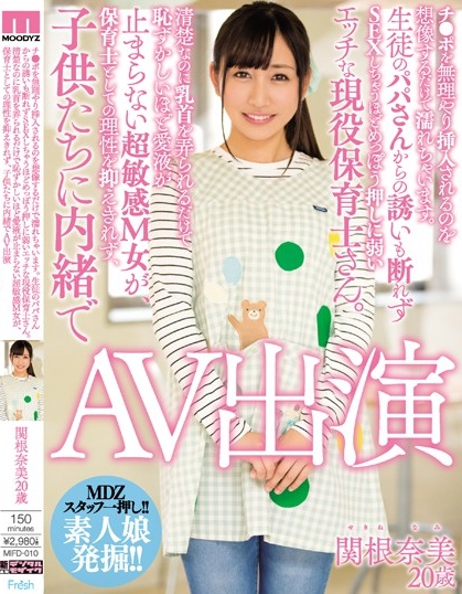 所以從蒼井そら(蒼井空)闖出名號後這一行就愈來愈多「保育士」(保母)降臨,他們有的被當做頂級新秀培養(如小倉奈々)有的則是以素人的形象現身,片商Moodyz要在5月25日推出的「関根奈美」(關根奈美)就屬於後者: