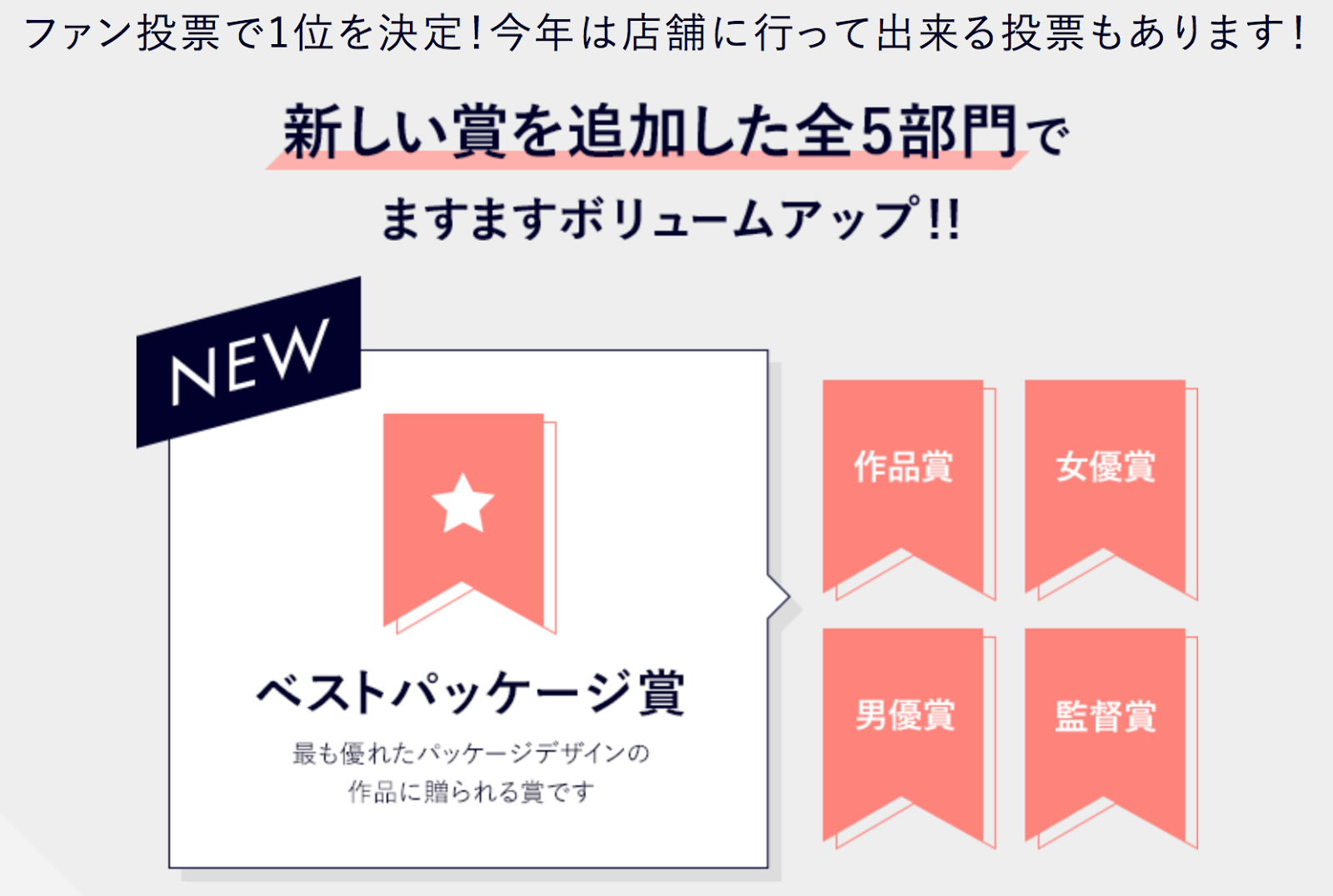 雖然6月2日全新的官網才會上線,不過有一些新訊息釋出了:首先,這次主辦單位將會把VR作品拿出來獨立成一個部門,讓近來致力於VR作品製作的片商更有動力參賽;另外,今年AV Open還增加了「ベストパッケージ賞」(Best Package賞)的獎項,要AV片商不只要拿出最好的企劃也要設計出最棒的封面,拿到冠軍就可以獲得高額的獎金喔: