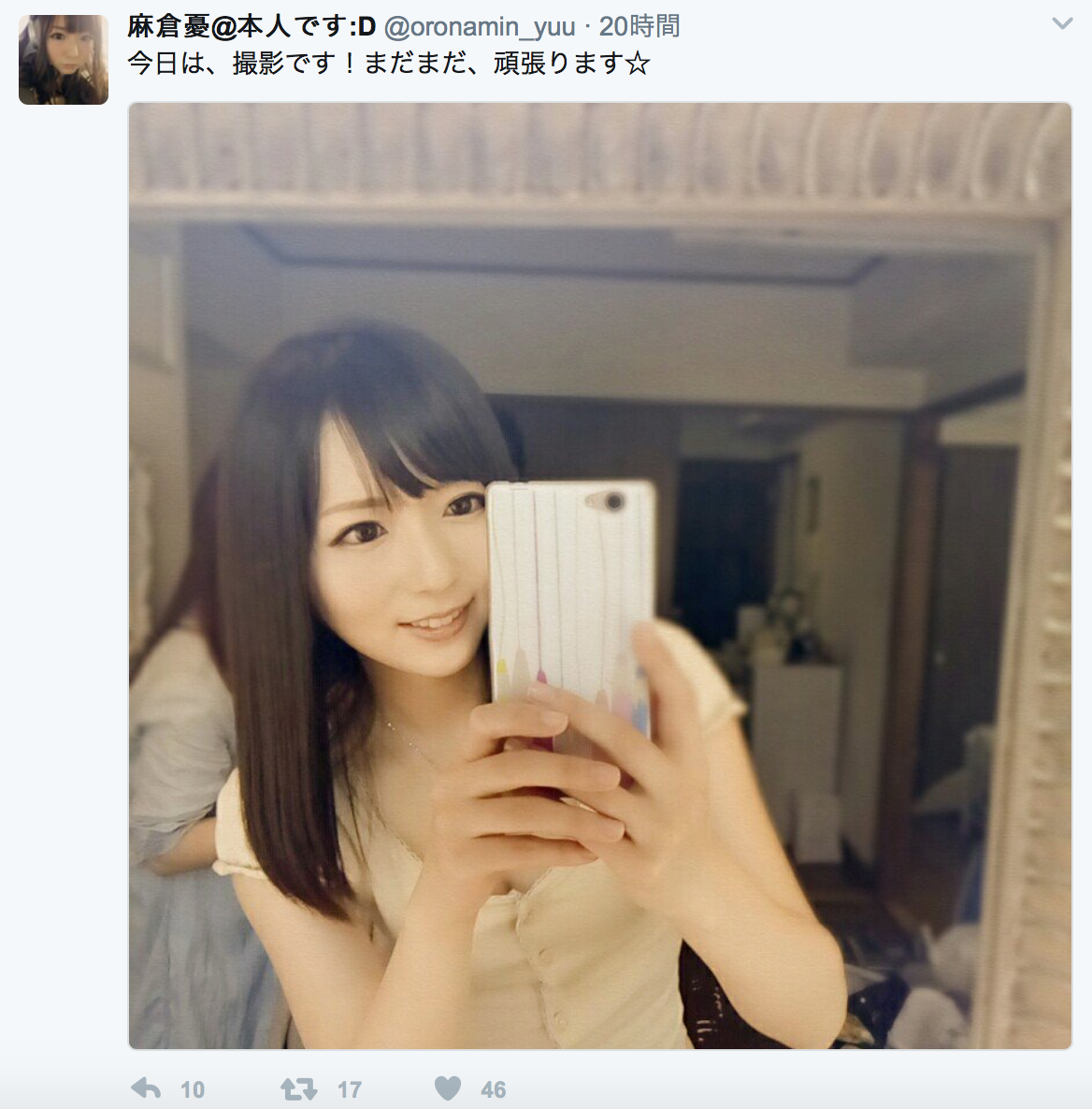 近期的動作頻頻應該就是為了完全復活作準備,在參加完上海成人博覽會後回到日本後麻倉憂不只開了twitter和大家報告近況更進一步地告訴大家:「我在攝影。」