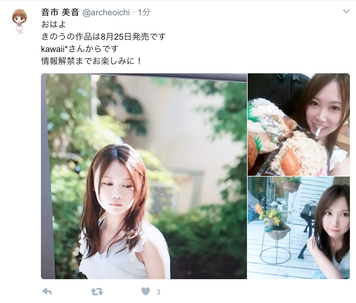 不過和其他的女優不同,音市美音雖然引退但她始終與AV界保持相當密切的關係,她曾經發過一支復活的作品、母片商kawaii*也翻箱倒櫃地在片庫擠出未公開影片發售,再加上經紀公司三不五時釋放訊息以及去年開始啟動個人twitter讓她始終保持一定的曝光度,現在就只差一支全新的復活片了: