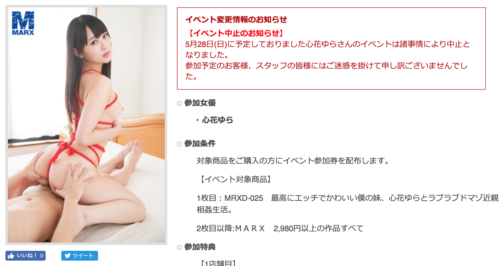 5月28日,原定在秋葉原舉行的心花ゆら(心花由羅)見面會取消了。