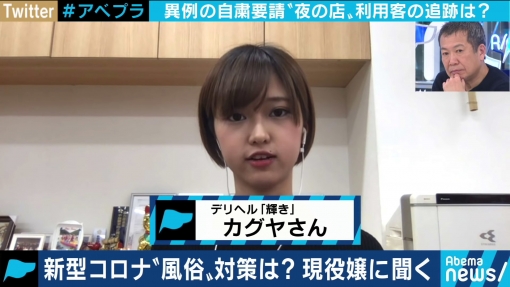 現在的她叫做新宿カグヤ(新宿輝夜),在風俗店當外送妹,之所以會上節目是因為肺炎疫情愈來愈恐怖,特種營業又要做生意又要怕小姐染病,必須是要有些防範措施的:有季なお(有季奈緒),不,現在カグヤ(輝夜)的她就是上節目和大家分享公司的做法,從3月分開始小姐就不和客人親親了〜