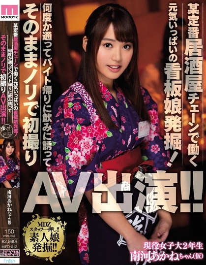 作品名:某定番居酒屋チェーンで働く元気いっぱいの看板娘発掘!何度か通ってバイト帰りに飲みに誘ってそのままノリで初撮りAV出演!!品 番:MIFD-012發行日:2017年7月~8月確定女優名:南河 あかね(南河 茜,Minagawa-Akane)事務所:Style-1身高/罩杯: