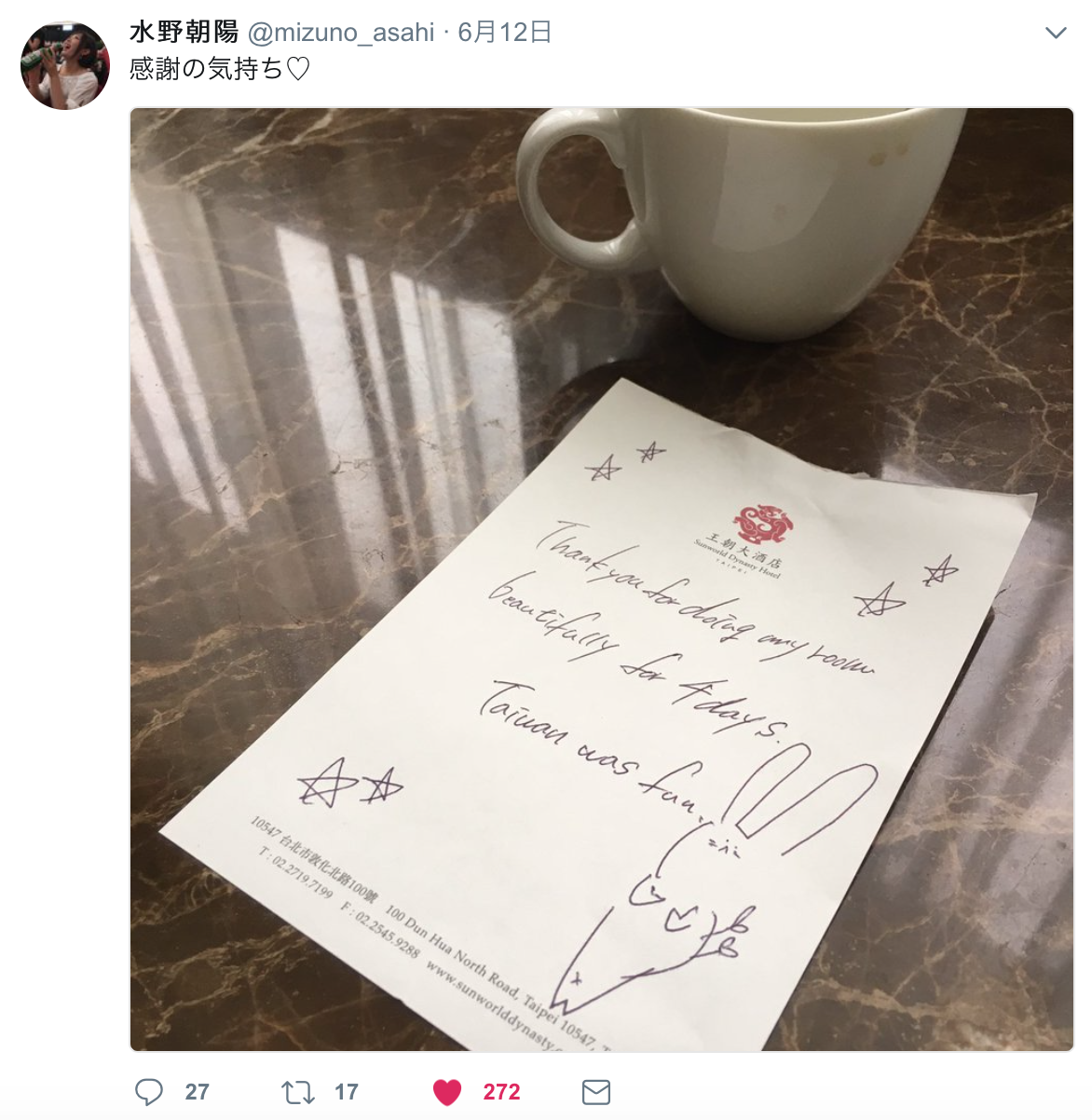 一切都是因為2017第一屆TAE台灣成人博覽會舉辦前那個週末與經紀人的聚會,擔任日本總召的經紀人嘲笑事務所C-More的A君說:「一個Julia已經夠難搞、又加上一個ドS(指個性很強喜歡主導一切)的水野朝陽,有你苦頭吃的。」讓我有點被嚇到了,所以在女優來台之前我就交代工作人員務必注意水野朝陽的情緒,千萬要順著她的毛摸…