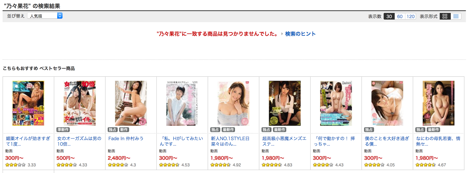 已經有人注意到了,在DMM上已經找不到乃々果花的作品了。