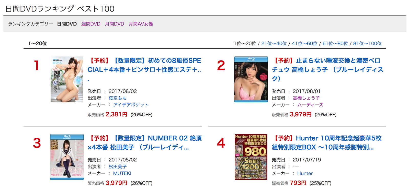 儘管高橋しょう子(高橋聖子)也不是一年365天都拿第一名的,不過能在8月7日檔的作品還沒上線前就幹掉這位藝人足以說明桜空もも(櫻空桃)衝得有多快:除了神似天使もえ(天使萌)的臉蛋和更加暴力的身材外,片商和事務所刻意的經營宣傳也讓她起步就走得很順,再加上在見面會上的自然表現以及偶爾在社群網站神來一筆的回應都很讓這位新人很快就抓住影迷的心,銷售自然也就水漲船高…