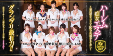 再看看演出女優的名單,水城奈緒、水谷心音、小西悠、松本メイ(松本芽衣)、椎名そら(椎名空)、麻里梨夏、さくらみゆき(櫻美雪)、姫川ゆうな(姬川優奈)、小谷みのり(小谷實)以及坂巻あずさ(坂卷梓)可說是名氣戰力兼具,片商讓她們換上誘人的精油按摩師制服然後騎到男優身上盡情揮灑,認識這群女優的朋友應該都知道男優籠罩在馬上風暴斃的危機中吧?