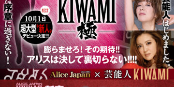他們要在10月1日讓某位「超大型新人」出道,這位新人不只身材超辣有G罩杯的實力而且還曾經是深夜電視節目的來賓,可說是外型資歷兼具的強者。為此片商還特別成立了「Alice Japan Kiwami -極-」的全新品牌,找來三位自演藝圈轉職而來的資深女優先行合體炒熱人氣~