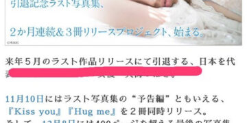 twitter一篇推文洩露了秘密,出版商在宣傳她「引退記念ラスト写真集(引退記念最後寫真)」的資料上寫了,天海つばさ(天海翼)將會在明年5月發表告別作~