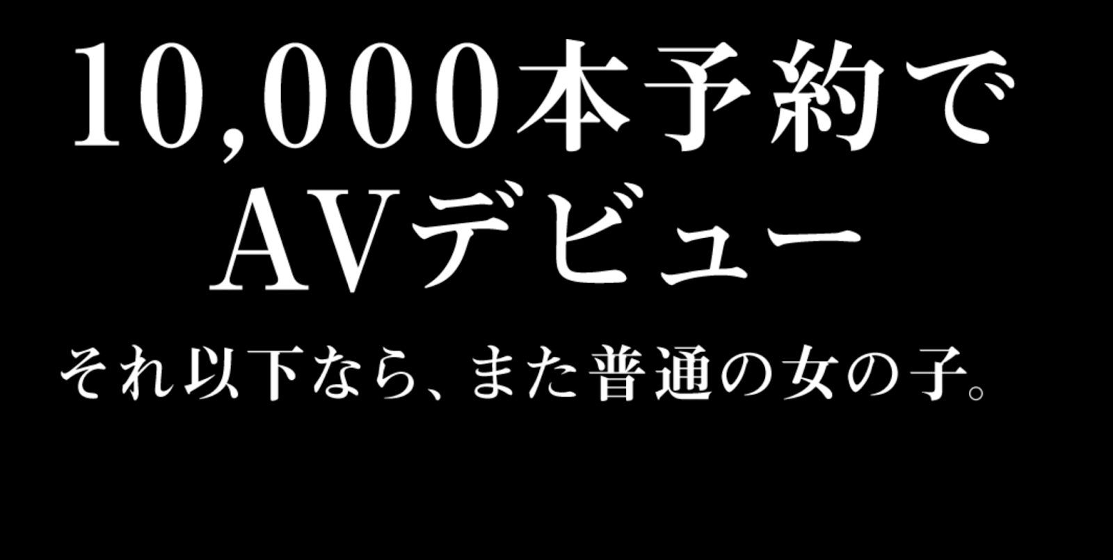 以SOD集團現有的女優來看,紗倉まな(紗倉真菜)在當新人的時候就有這個銷售能力,而且在出道第一年的時候她有超過5支作品賣了一萬片,從此再也沒有人能挑戰她一姐的地位。不過那是2012年的事了,現在的AV界買氣又更差了,SOD集團推出這個「沒有預約一萬片就不出道」的企劃擺明了是對這位無名新人信心無限大、認定她一定可以完成目標: