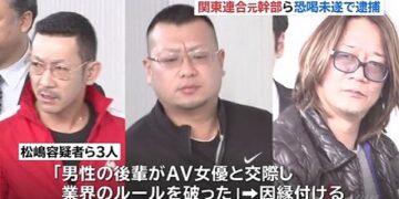 最近AV的八卦是什麼?我想應該很多人知道了,就是某位AV男優因為後輩和女優交往結果遭到威脅破財200萬日幣,前兩天日本警方收網,一口氣逮捕了AV監督、脫衣舞場的社長等三人: