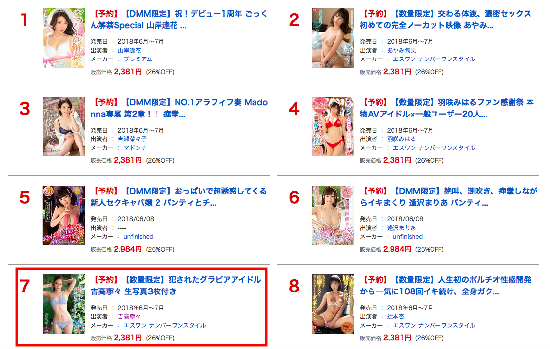 身為片商和事務所力捧的頂級新秀,吉高寧々能在第9支作品才3P、第10支作品才被凌辱在現在的AV界可說是不可思議,也因為她「進化」的比較晚,所以我認為這支作品應該會有不錯的爆發力(不過這幾天最賣的是山岸逢花吞精解禁),甚至可以在DMMアダルトアワード(DMM成人大賞)前為她衝一波氣勢~