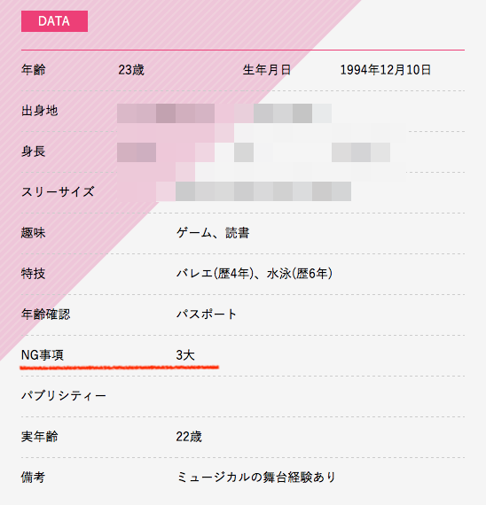 這裡我們就拿一位最近發片很猛的企劃女優來做說明,人是誰就先不管了,請大家看一下「NG事項」(不做的事)的那一欄…