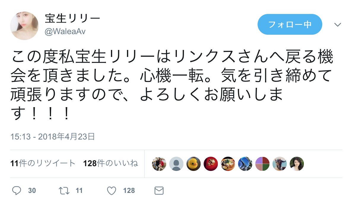 當然,雙方在決定繼續合作之前是有談過條件的,所以大家可以看到最近宝生リリー(寶生莉莉)在社群網站上的發言已經「正常」許多;而經紀公司也很認真地替她找工作,所以有在注意她的朋友應該都發現最近她的工作行程很多,心情也愉悅不少: