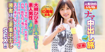 那就是大槻ひびき(大槻響)為了慶祝出道10週年而拍攝的「人気SNSいいねナマ中出し旅前編大槻ひびきを日本一好きな素人男性は誰だ!!? ある日突然、北海道、佐渡島、高知、鹿児島に飛び立ち3日以内にひびやんのDVDを売って自力で東京に帰って来られるか!??勝者はご褒美中出しSEX!!」:我懷疑這原本是本中為了AV Open大賽而拍攝的作品,只是因為AV Open挪到明年但作品不能延後發(因為會失去慶祝出道10週年的意義)所以才會現在就上了…
