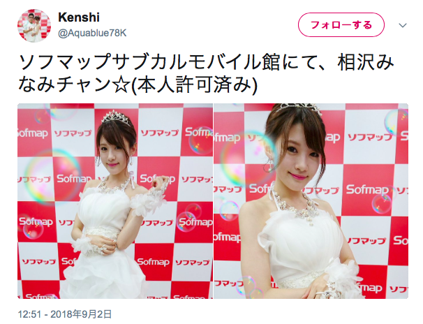 再來看看這篇標記有相沢みなみ(相澤南)的推文,其實就是很正常的照片對不對?但請大家看看拍照的那位影迷在推文的最後寫了什麼: