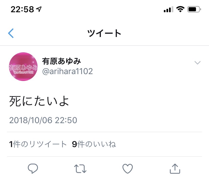 在twitter寫下「死にたいよ(我想死)」後,有原あゆみ(有原步美)先是把所有的發文清空接下就按下了自爆鈕刪了帳號,嚇得我屁滾尿流連忙通知經紀人注意她的狀況,不想拍片沒關係,別拿生命開玩笑啊~