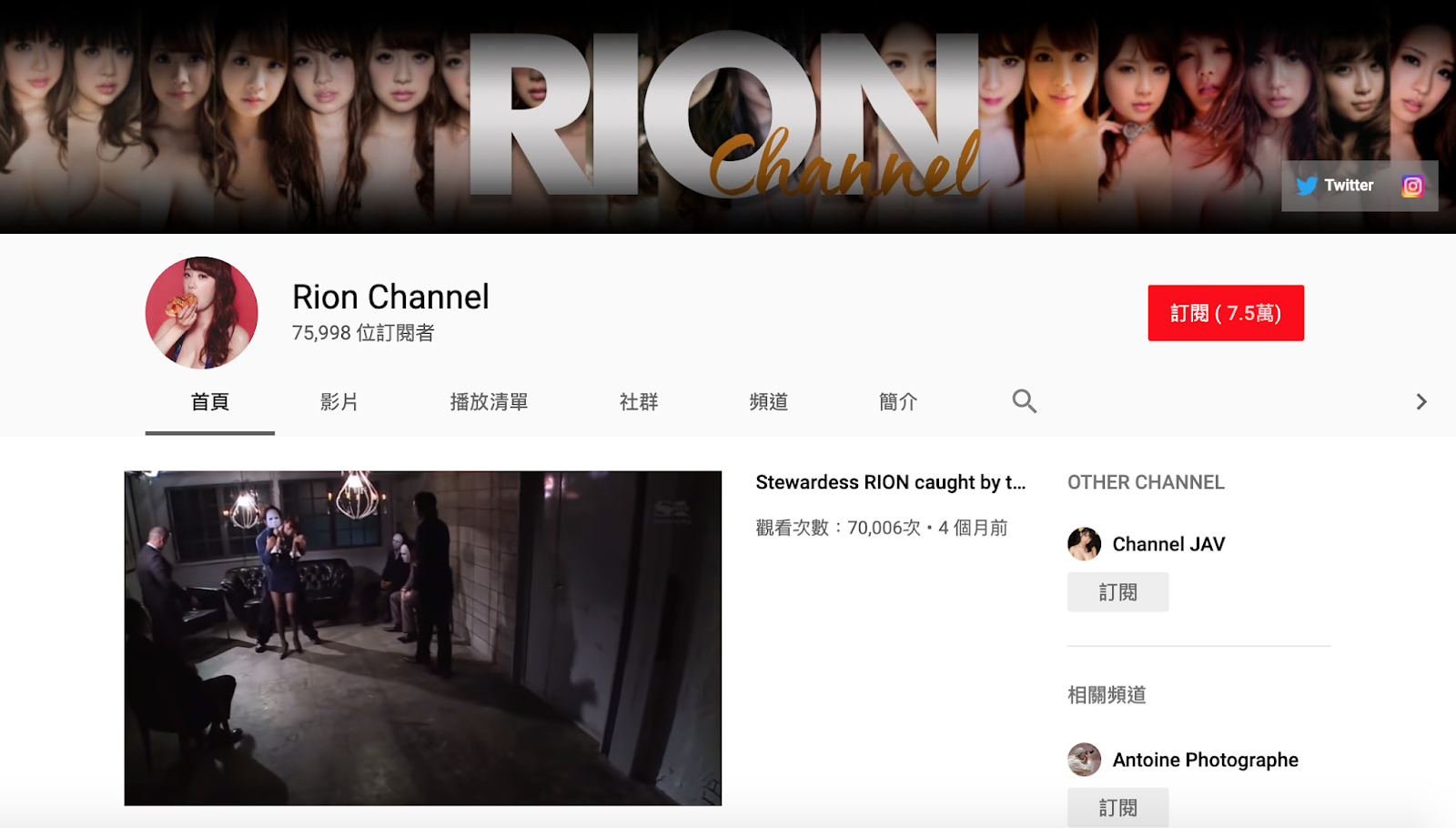 不過話說回來,這樣一個twitter竟然也有12,000人追蹤、Youtube頻道更有接近8萬人訂閱,我想RION的魅力真不是蓋的。儘管女優引退又復活常會被某些影迷嘲笑「錢花完了」,但我相信很多人會希望RION花錢如流水然後趕快復出,雖然這一行現在有神乳封號的女優很多,但能取代她的真的沒有~