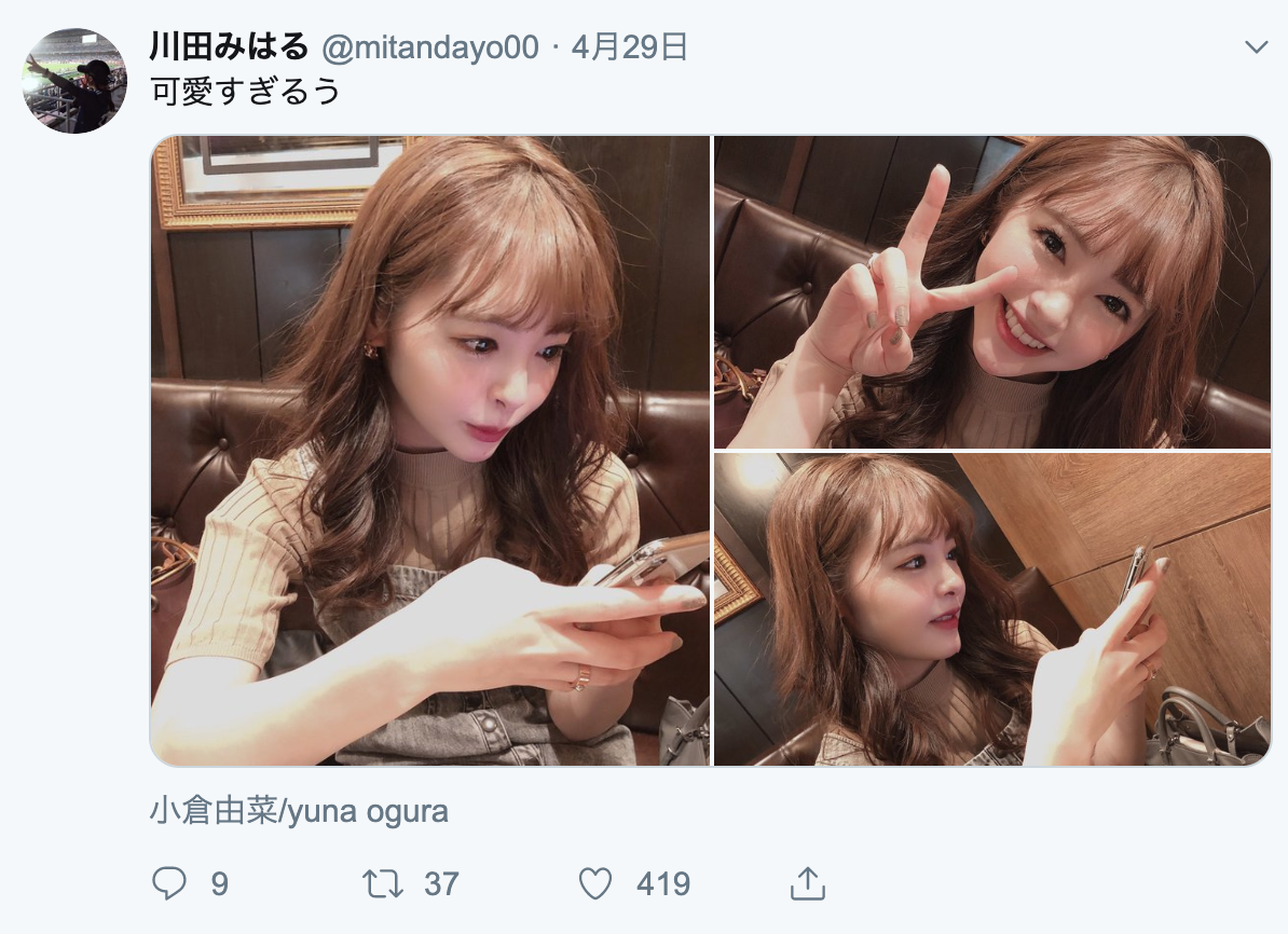 業界的說法是她和事務所起了很嚴重的爭執,至於是吵什麼我就不知道了;但就像大家想的一樣,經濟壓力很大的三田杏並不是真的想走,4月下旬,她開了新的twitter,找來了好友小倉由菜,復出已經箭在弦上: