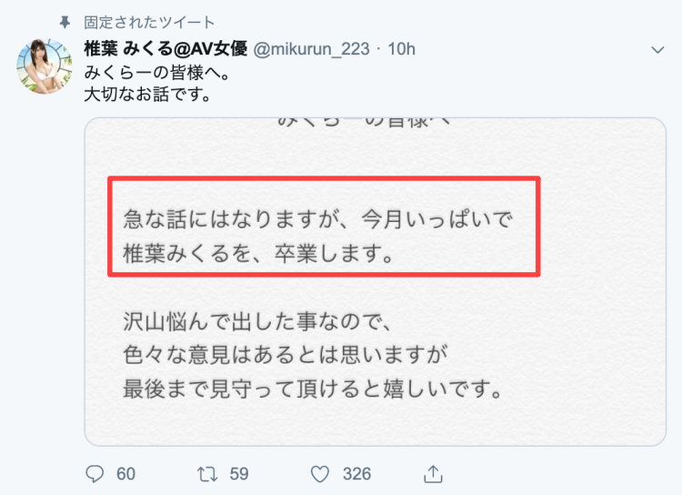 所以椎葉みくる(椎葉美久流)挑了個不會太過急躁、也不會為時已晚的時間收手不玩,時間剛剛好。聽到事務所這麼說,我也釋懷了些,忍不住向遠方的她寄予祝福:一路好走,真的,但如果這個「卒業」是為了跳槽到其他事務所佈局的話動作也要快,這一行不怕你換名字再出發,怕的是拖太久大家忘了你是誰~