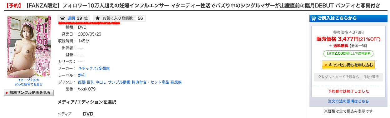 答案自然是肯定的,日本真的就是有影迷喜歡這樣的作品,而且你文案寫得越誇張大家越想看:打個比方,像「」這支作品又是說她在網路上有100,000個追蹤者又是說她是個缺錢的單親媽媽然後還說她這一個月就要把小孩生下來了結果你猜這支作品賣得怎麼樣?答案是4月18號當日的銷售排行榜第21名以及上一週排行第39名,別忘了,這支作品的售價比一般的片子貴1000多塊日幣,能賣到這樣你就知道有多少人對這種作品有性趣⋯