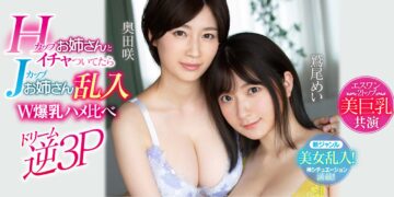 這支「エスワン2トップ美巨乳共演 Hカップお姉さんとイチャついてたらJカップお姉さん乱入してきてW爆乳ハメ比べドリーム逆3P」簡單講就是峰峰相連到天邊ー兩位女優一個H罩杯(奥田咲)一個J罩杯(鷲尾めい,鷲尾芽衣),除此之外兩人年紀差很多身高也一高一矮完全沒有共通點,所以很顯然地,這是一支「賣奶」的作品: