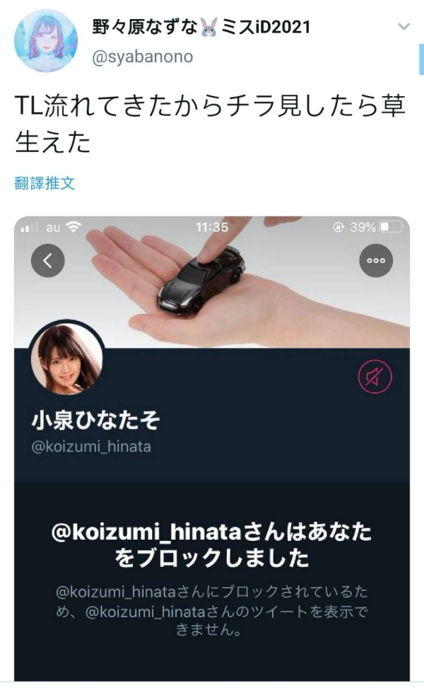 已經引退專心去當漫畫家的野々原なずな(野野原薺)今天是在twitter說自己被小泉ひなた(小泉日向)封鎖了,這可讓我嚇了一大跳ー是說兩人是很少提到對方,但如果你還記得的話兩人剛出道時可是無話不談的好朋友,只有野々原なずな(野野原薺)在場才能讓像座冰山的小泉ひなた(小泉日向)笑顏逐開和大家聊天,甚至片商還為此撮合兩人合作拍片⋯