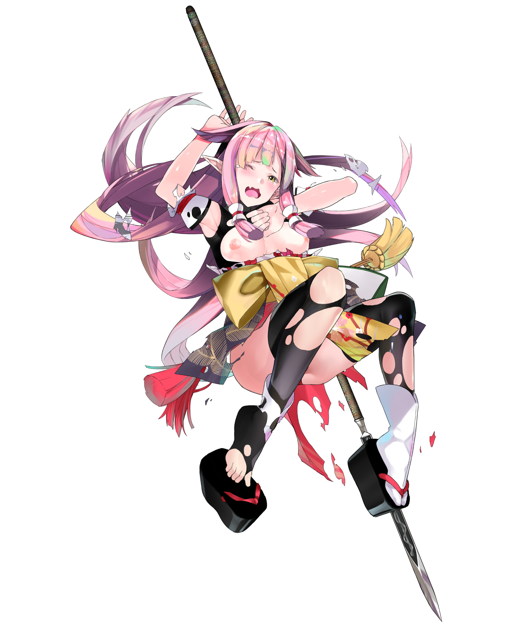 老江湖的你一定知道哪裡不對勁:沒錯,雖然一看就知道是張飛是伊達政宗這些英雄轉職而來的,但那些寄宿在兵器裡的英靈們打扮也未免太清涼了吧?再來,這種一面招募新隊友一面跑劇情的模式怎麼看都是很H-Game的套路,只要廠商有心,那些英靈一秒就能變後宮,她們寄宿的神兵也都可以當R20自慰套用〜