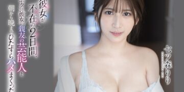 那就是3月7日發行的新作「彼女が不在の2日間、ボクは彼女の親友の芸能人と朝から晩までひたすらハメまくった。」:聰明的你一定知道這是之前非常流行的「彼女不在」企劃,片中男優的女友前腳剛走去旅行然後七ツ森りり(七森莉莉)就來敲門,在接下來的兩天兩人只羨慕鴛鴦不羨仙、只要能硬就要搞,一發接一發,發發帶七ツ森りり(七森莉莉)升天去~