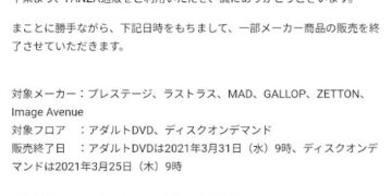 出什麼大事?如果您固定會在FANZA(就DMM啦)買片一定注意到了這紙公告,3月底,Prestige體系的片商全面撤出FANZA,作品不給他們賣了〜